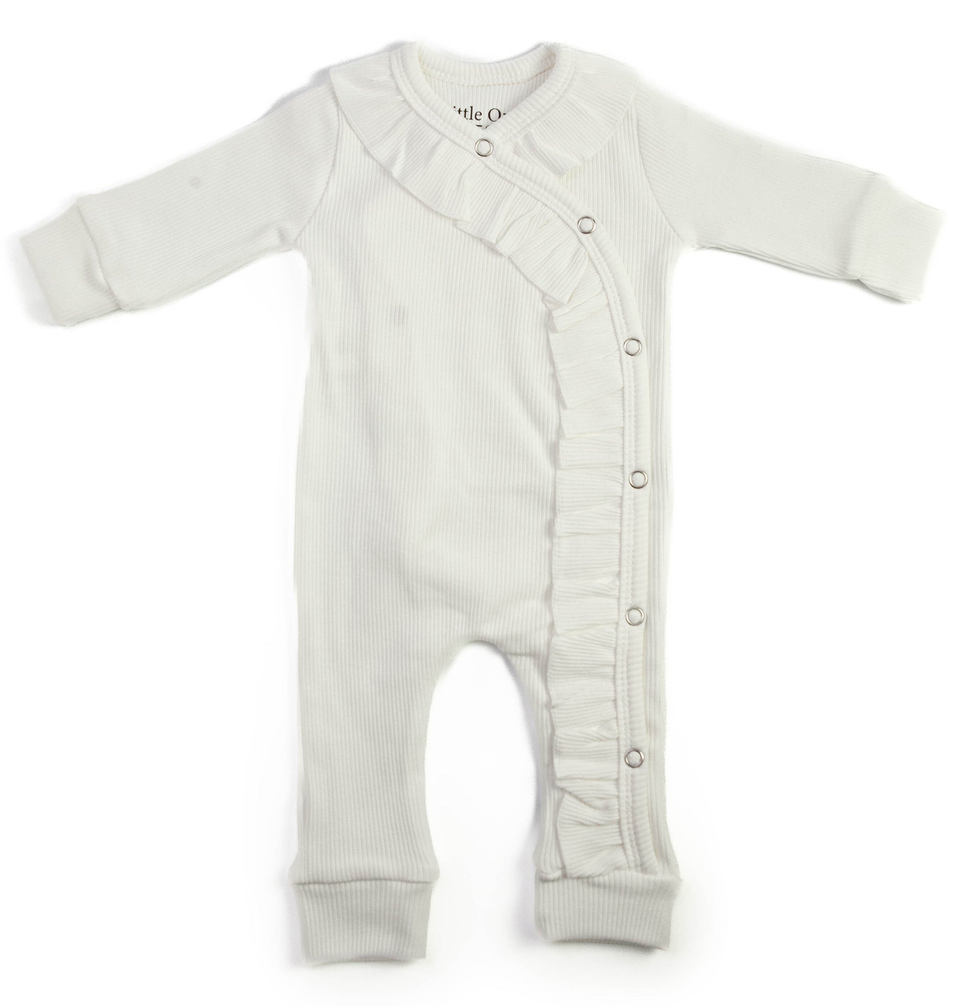 Baby Strampler Rippenrüsche ecru