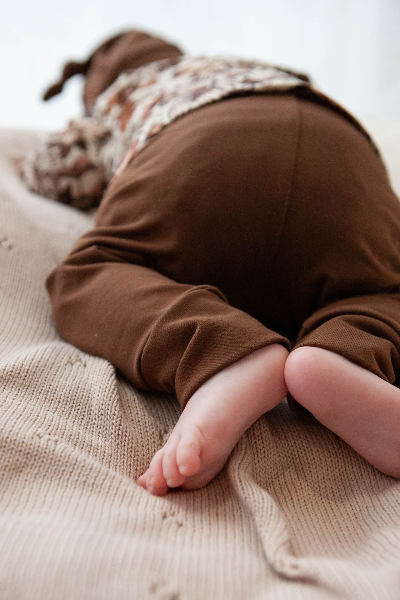 Diese weichen Babyhöschen bestehen aus dehnbarem, öko-zertifiziertem Jerseystoff , der sich wunderbar auf der Haut anfühlt. Der Bund ist doppellagig – ohne steifen Gummibund , dafür aber mit weicher und bequemer Passform über der Windel. Genau so, wie man es sich für ein Neugeborenes wünscht.