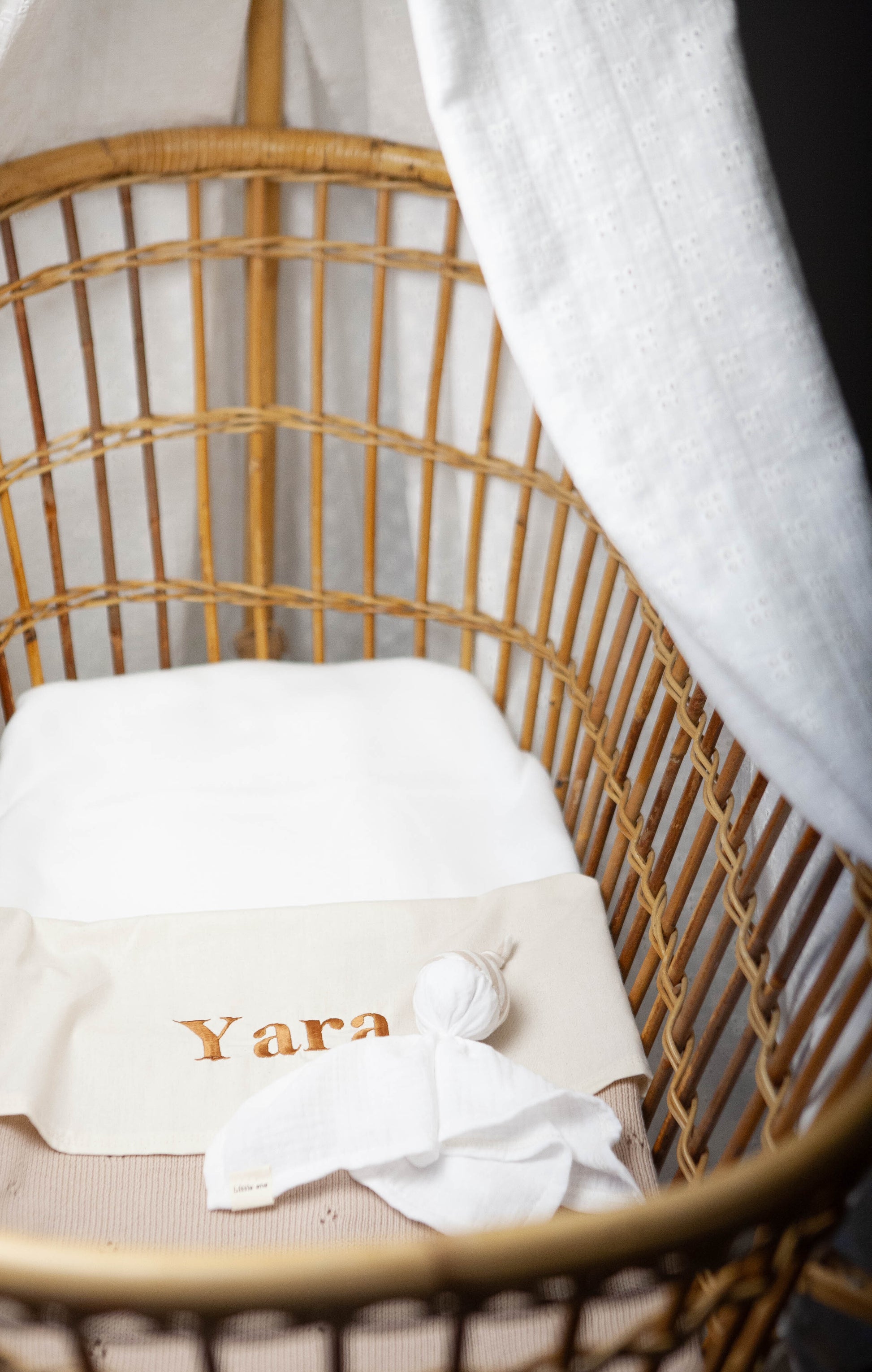 Suchen Sie ein besonderes und persönliches Geschenk zur Babyparty? Unser Geburtslaken aus 100 % Öko-Baumwolle ist eine liebevolle Erinnerung an ein neues Leben. Personalisiert mit dem Namen Ihres Sohnes oder Ihrer Tochter wird dieses Laken zu einer geschätzten Ergänzung für das Kinderbett.